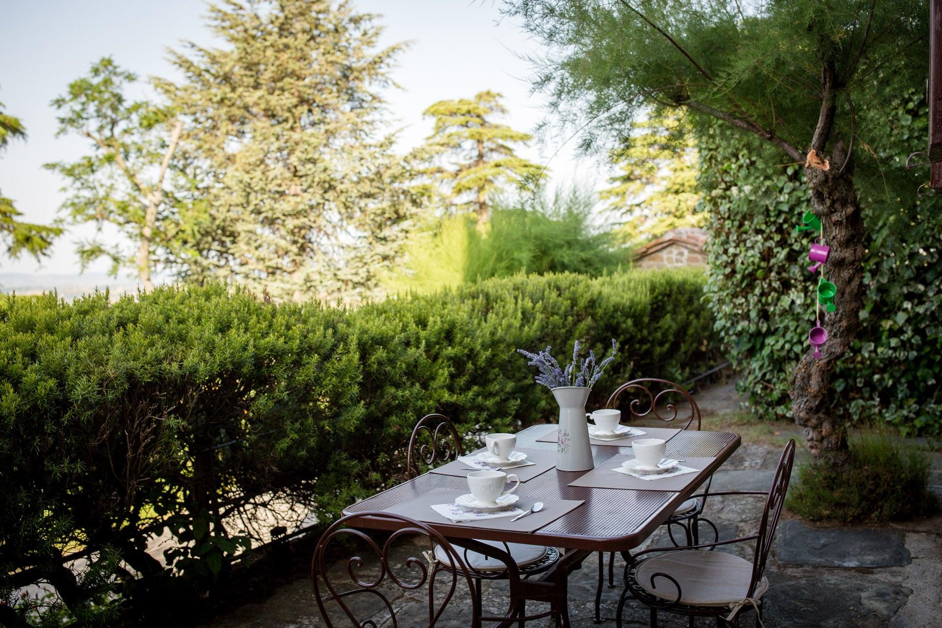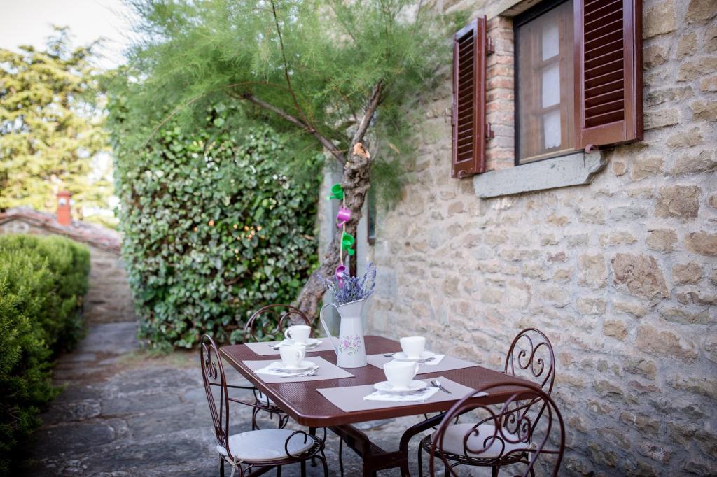Gli amanti del pane tostato potranno utilizzare un pratico toaster mentre gli amici o i familiari conversano seduti al grande tavolo del soggiorno con tv, accanto al caminetto. La camera matrimoniale è ampia, luminosa e arredata con mobili in stile toscano e travi in legno a vista. La camera singola offre uno spazio accogliente e riservato con un comodo letto, pavimento in cotto e travi in legno sul soffitto. La dimora si completa di un comodo bagno con doccia e asciugacapelli. All’esterno deliziosi angoli da vivere all’aperto immersi nel verde, per rilassanti letture o colazioni energizzanti.